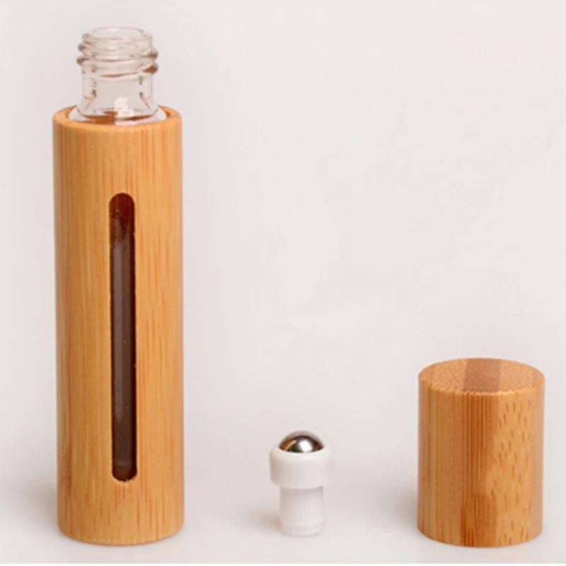 Бамбуковая бутылочка для эфирных масел 10 мл, флакон для духов, деревянная бутылочка для духов из нержавеющей стали, ролик для ароматерапии
