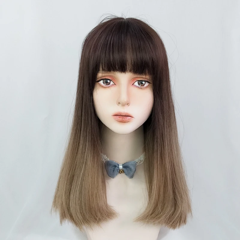 Градиентные темно-коричневые челки для косплея Лолиты Харадзюку длинные прямые милые натуральные головные уборы для девочек
