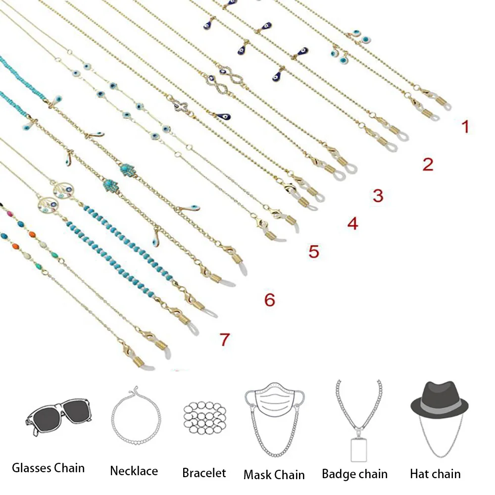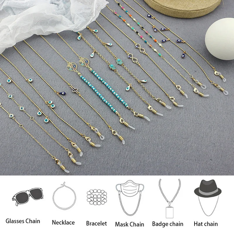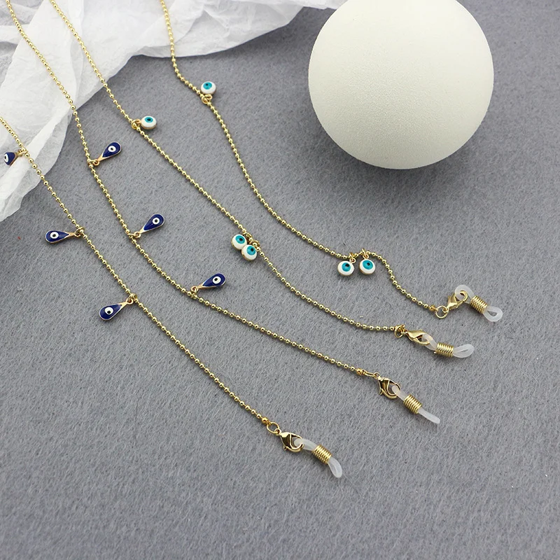 2021 студенческие классические солнцезащитные очки, украшенные бисером, держатель для маски, ремешок, модный, с надписью, крест, злые глаза, Очаровательные очки, цепочка на шею