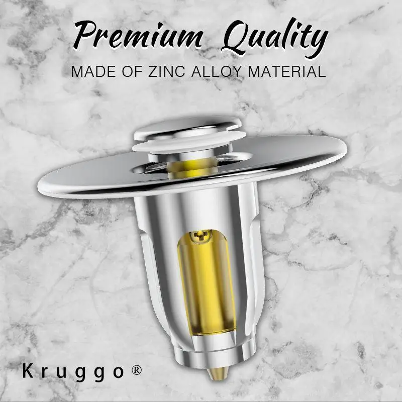 Kruggo® всплывающая пробка для раковины ванной комнаты спроектирована с внутренним хорошо организованным сетчатым ситом, который аккуратноСобирает волосы, ювелирные изделия, грязь и что угодно,Предотвращает засорение слива.