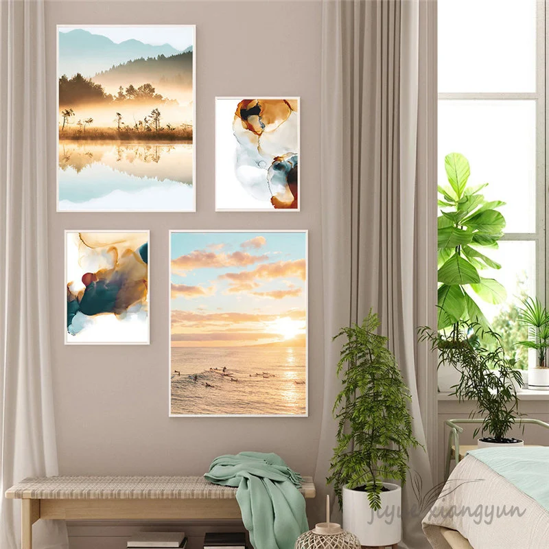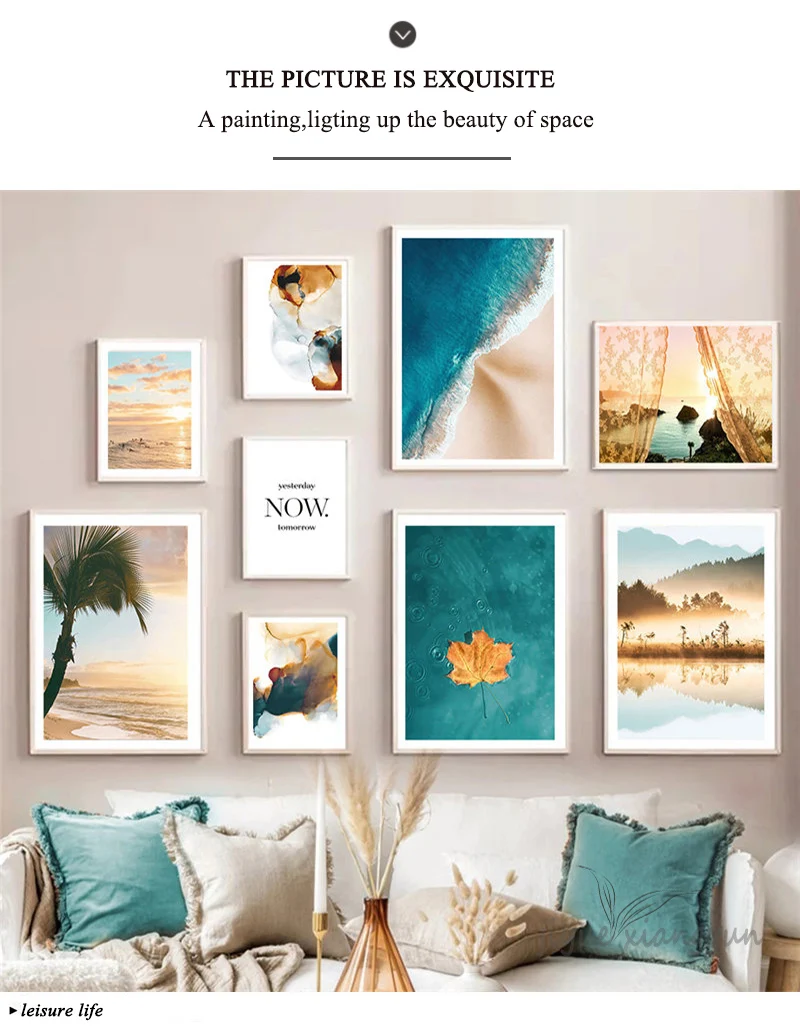 Абстрактные скандинавские постеры, кокосовое дерево, солнечный пляж, залив, городской лес, озеро, настенная Картина на холсте, картины для декора гостиной