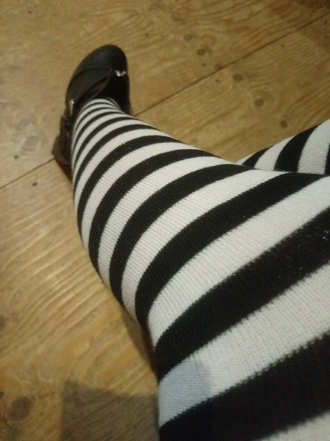 Очень милый комплект. Носки выше колена и приятно носить, не туго. Рукава кажутся маленькими и достаточно свободными. 163 см, 53 кг