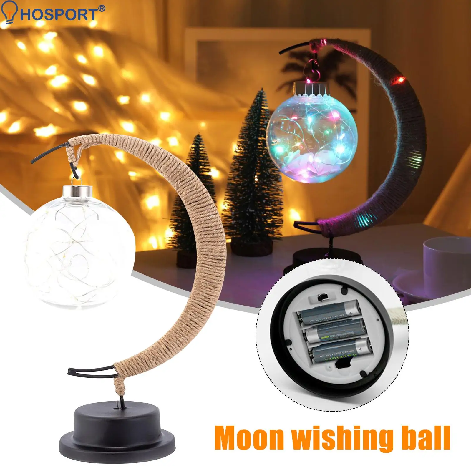 Светодиодная лампа в виде Луны, винтажный Декор для комнаты, прикроватная сказосветильник Ночная лампа, линия ротанга, ручная работа, пеньковая веревка, Sepak Takraw, светильник па, настольная лампа