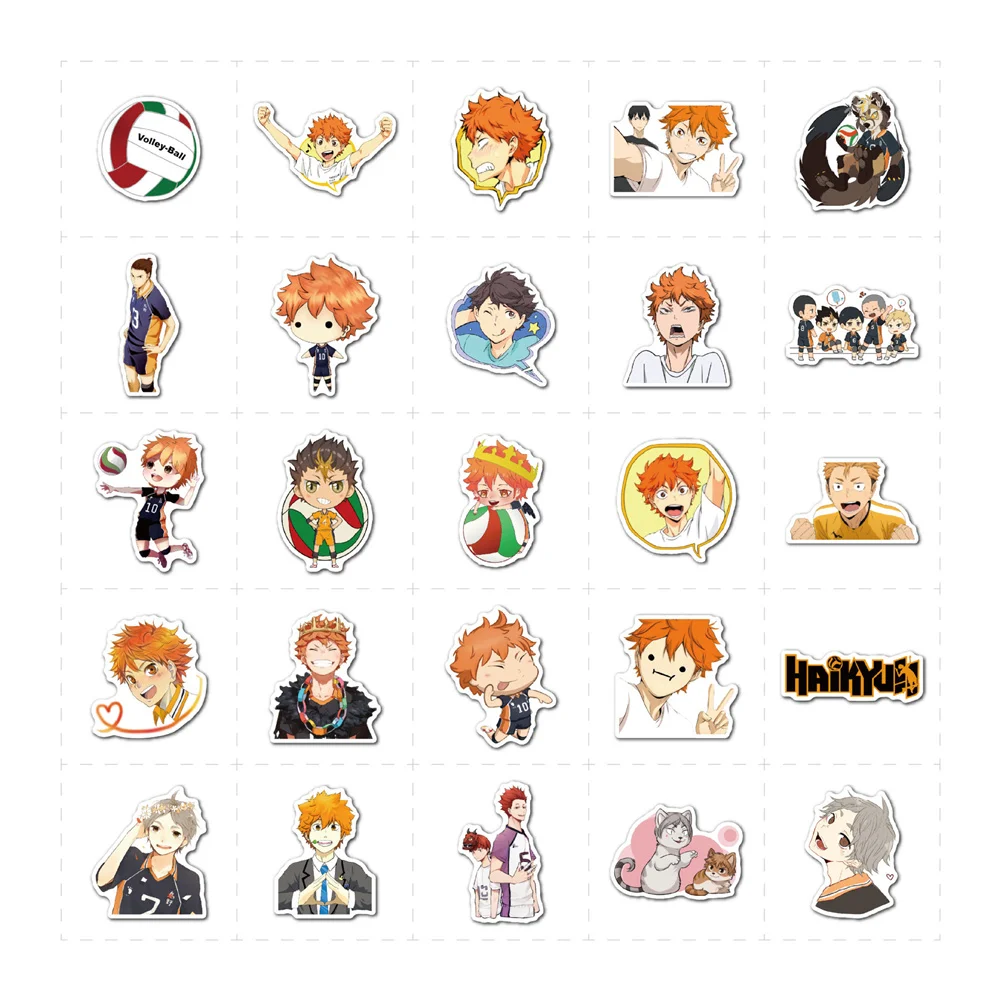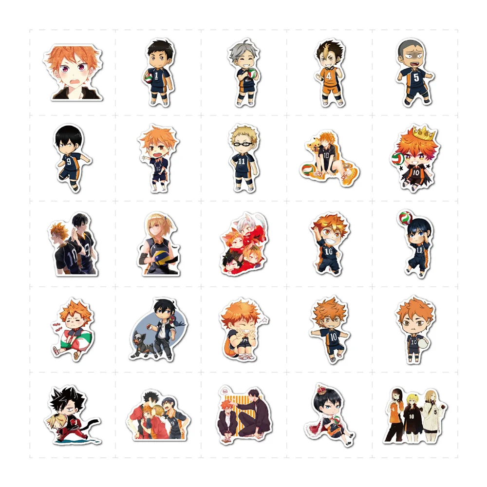 Наклейки черно-белые в стиле аниме, водостойкие, 103050 шт.