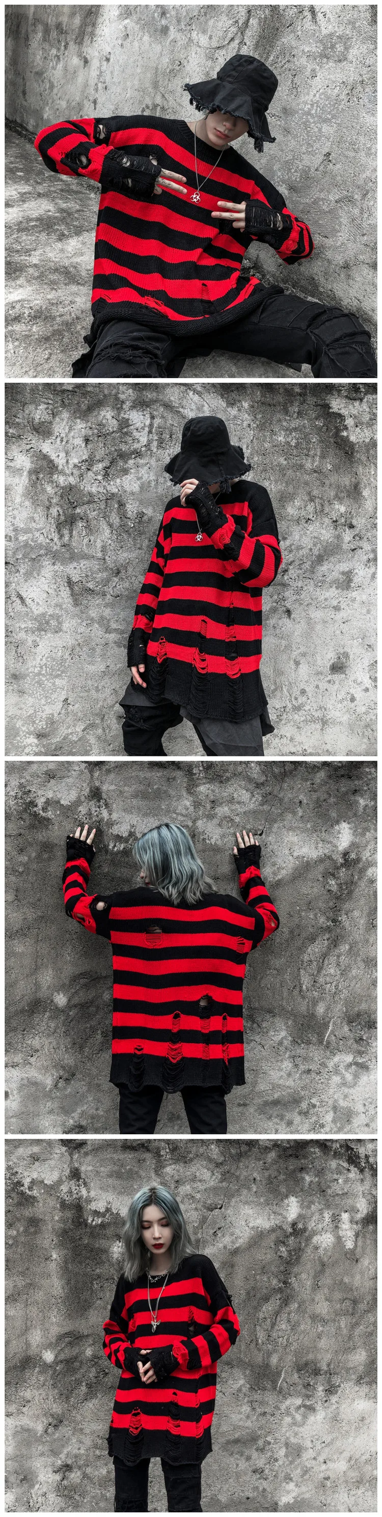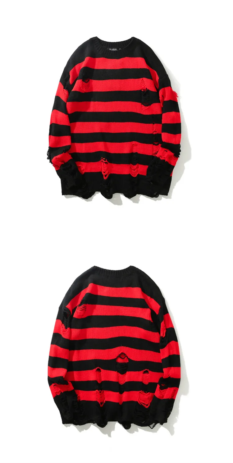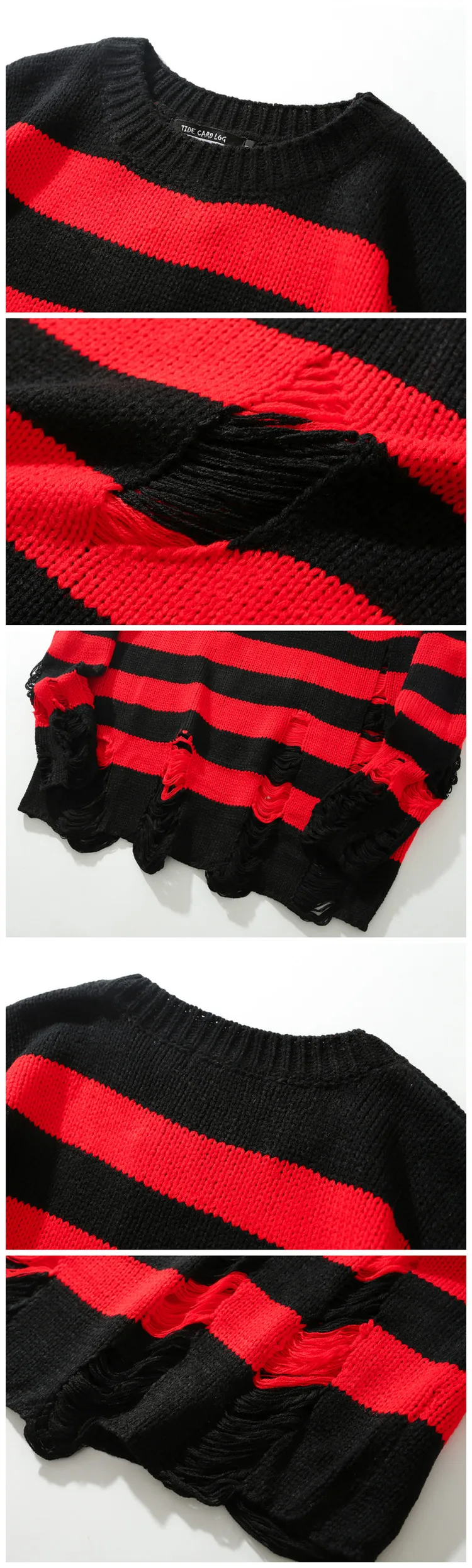Номер моделиStriped Crew Neck Hole Hip Hop Sweater Men