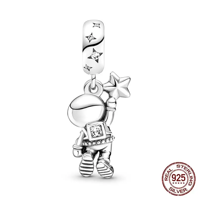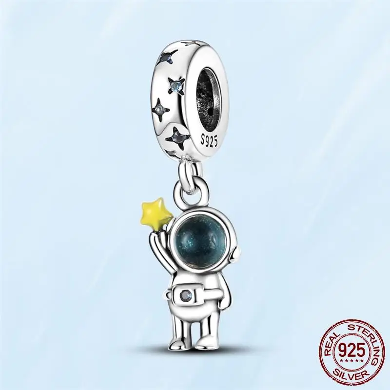 Новинка 2021, бусины-шармы в виде астронавта из серебра, звезды, по...