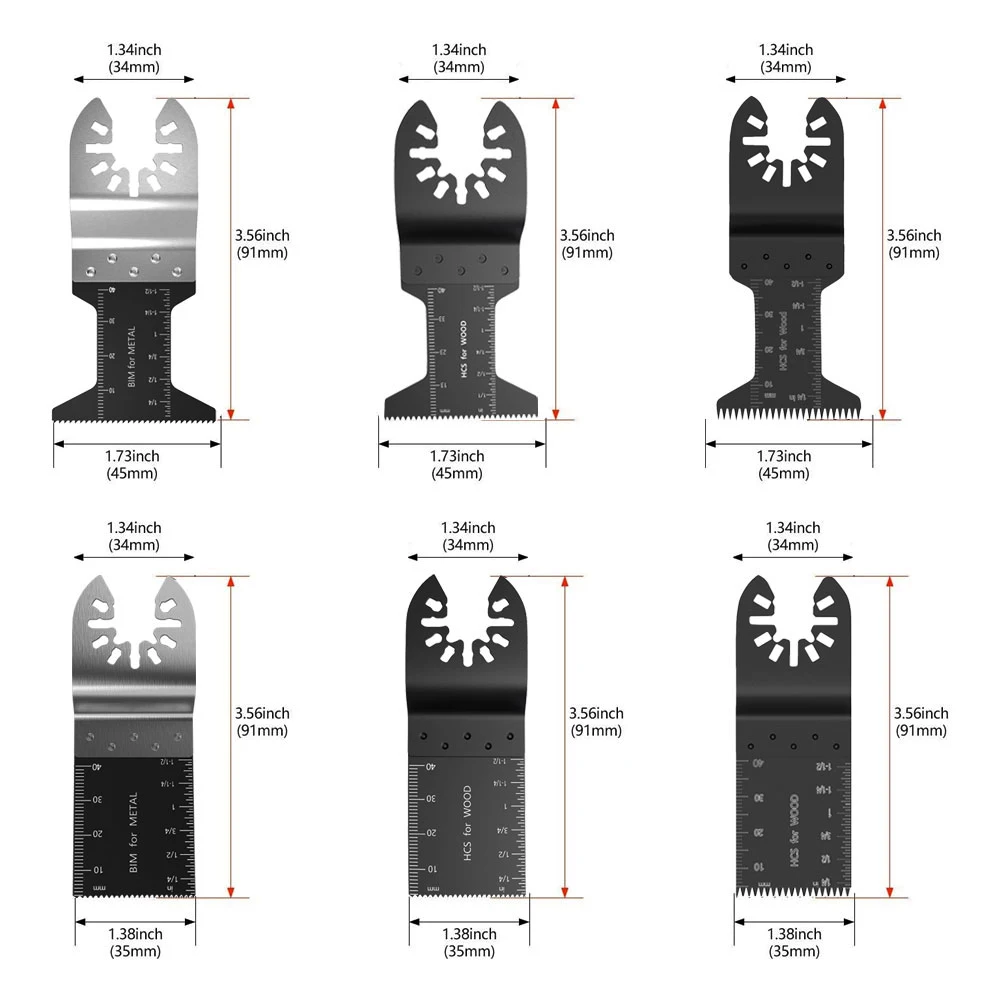 3. Точная резка: Встроенные маркеры длины с двух сторон, одна сторона-дюйм, а другая-сантиметр, убедитесь, что вы можете легко и быстро получить точные порезы во время работы с ним. Эти Осциллирующие пильные диски могут удовлетворить различные потребности, которые могут быть использованы для мастерской, дома или в другом месте.