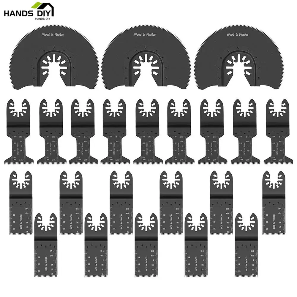 1. Мульти лезвия: 23 пилы содержат полукруглые пилы, японский зуб колеблющихся мульти инструменты пилы, точность мульти лезвия инструмента, подходит мягкий металл, пластик и дерево пилы в общей сложности, изготовлено с прочной режущей кромкой, которая устойчива к износу и быстро режет. Вы можете найти более подробную информацию в разделе изображения слева.