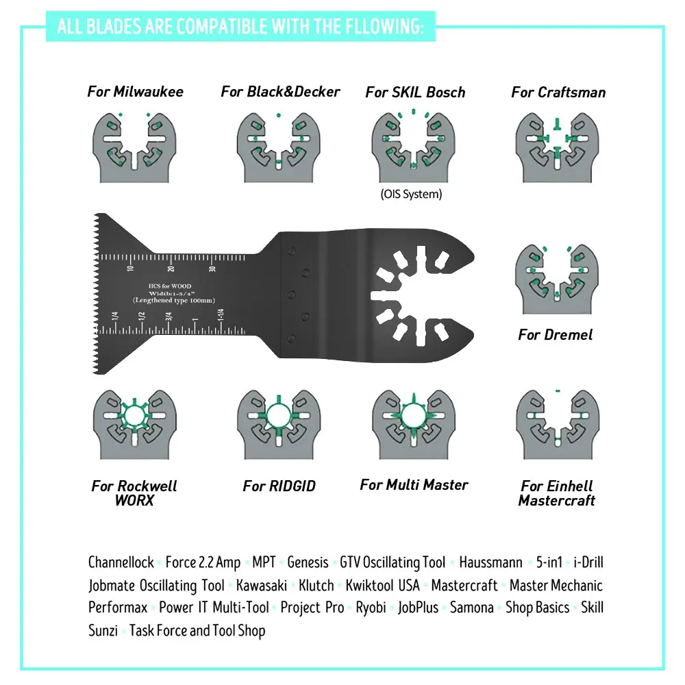 Подходит для универсального мульти-инструмента международного бренда: Ryobi/ Mastercraft / Milwaukee / Ridgid / Fein / Black & Decker / Rockwell / Dewalt / Einhell / Skil / Porter Cable / Worx / Craftsman.