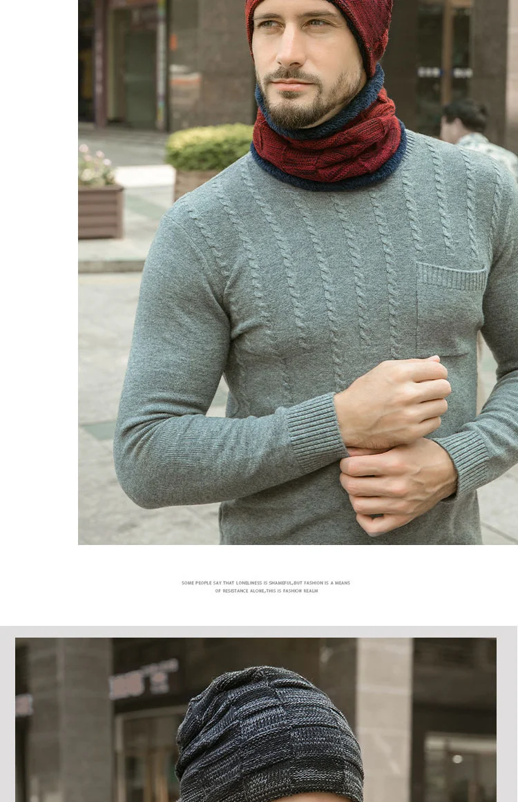 Зимняя шапка 2 шт.компл. облегающие шапки Мужская шапка шарф Манишк...