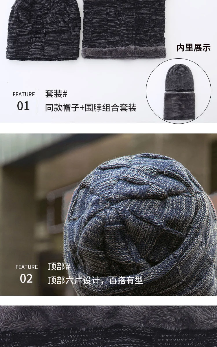 Прямая поставка, зимняя шапка, кепка, воротник, костюм, плюшевая утепленная шерстяная шапка, мужская вязаная шапка на осень и зиму