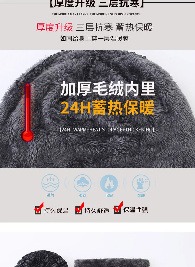 Мужская шапка 2 шт.компл. Мужская Зимняя Вязаная Мягкая Плюшевая об...