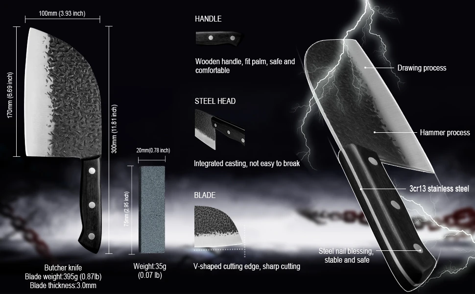 Высокоуглеродистая сталь, нож для мясника, нож для шеф-повара, 7 дюймов, полностью Tang Чоппер, резак для курицы, лезвие без ржавчины