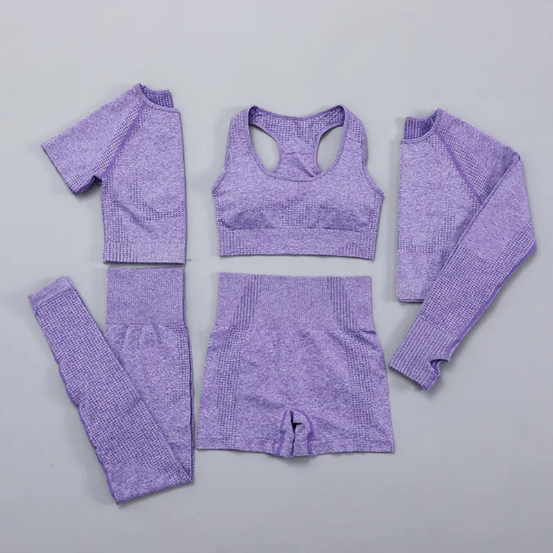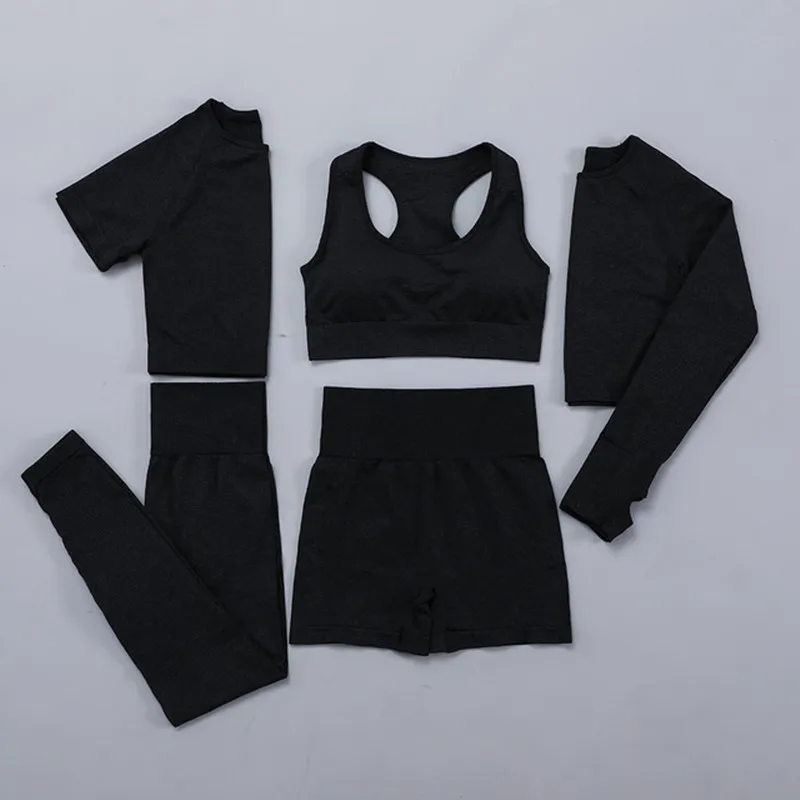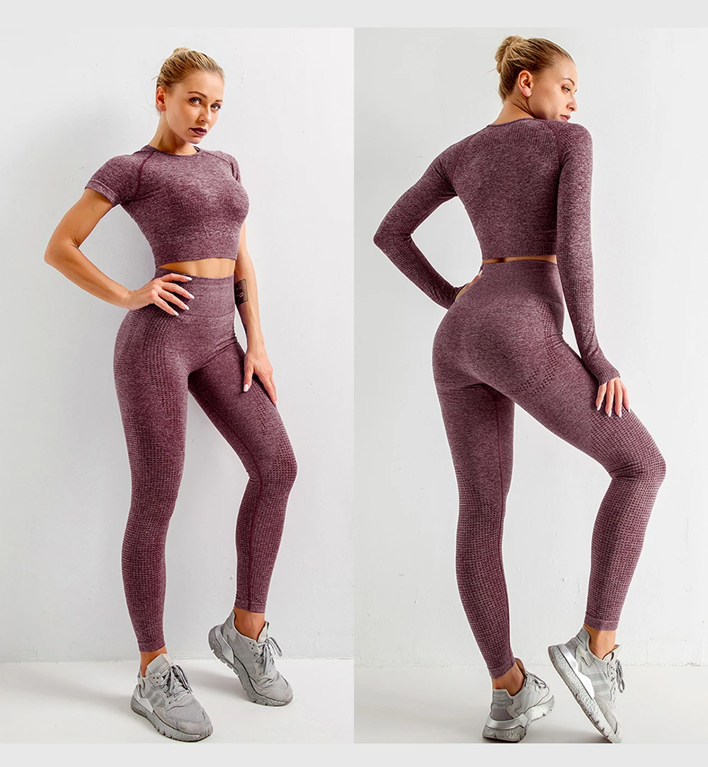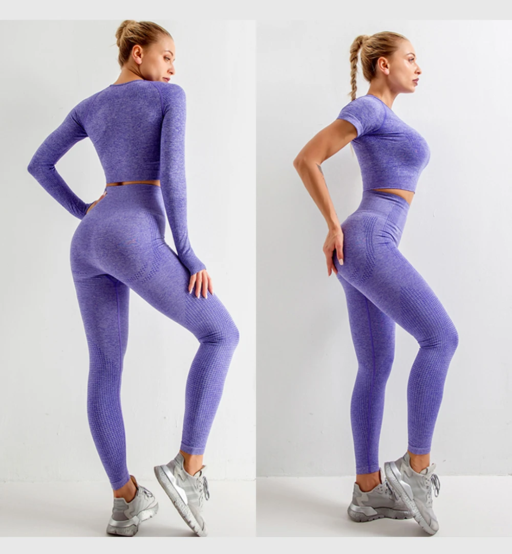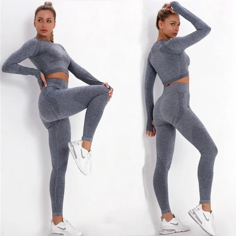 Бесшовный Женский комплект для йоги, тренировочный тренажерный зал, с длинным рукавом, укороченный топ для фитнеса, леггинсы с высокой талией, спортивная одежда, костюмы