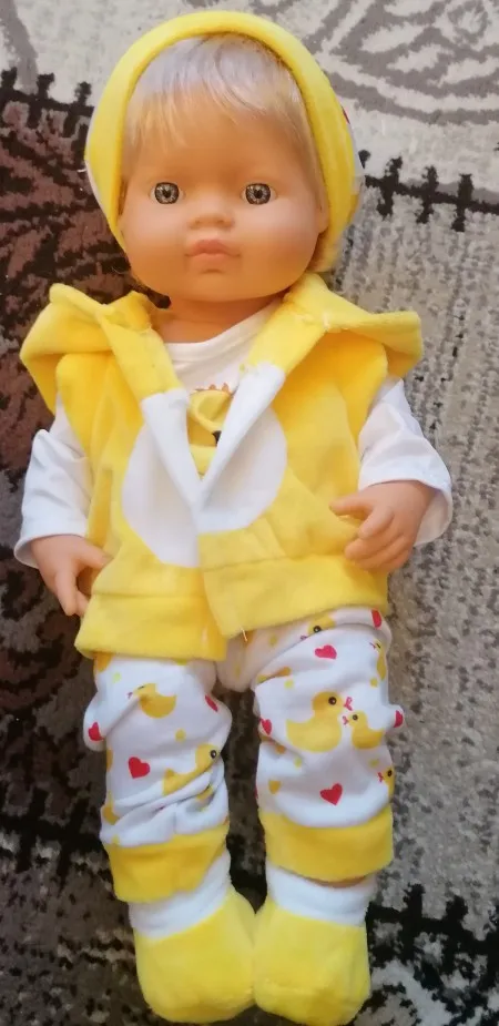 Очень милый и мягкий костюм, бодик на липучке, что удобно для игры. Сшито аккуратно. На baby born подошло, подойдёт и на кукол поменьше.