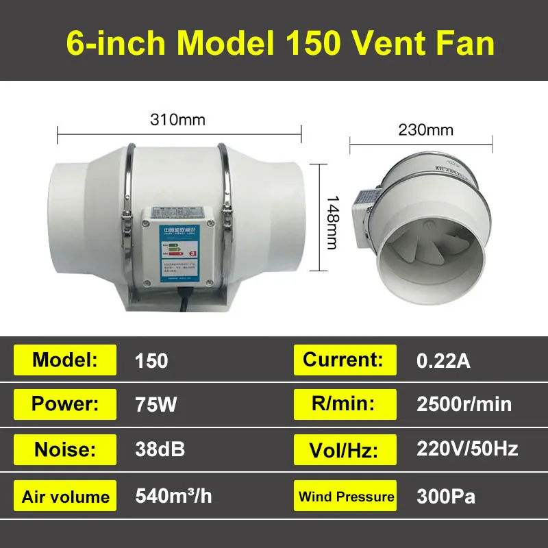 Вытяжной вентилятор, 6 дюймов, 220 В