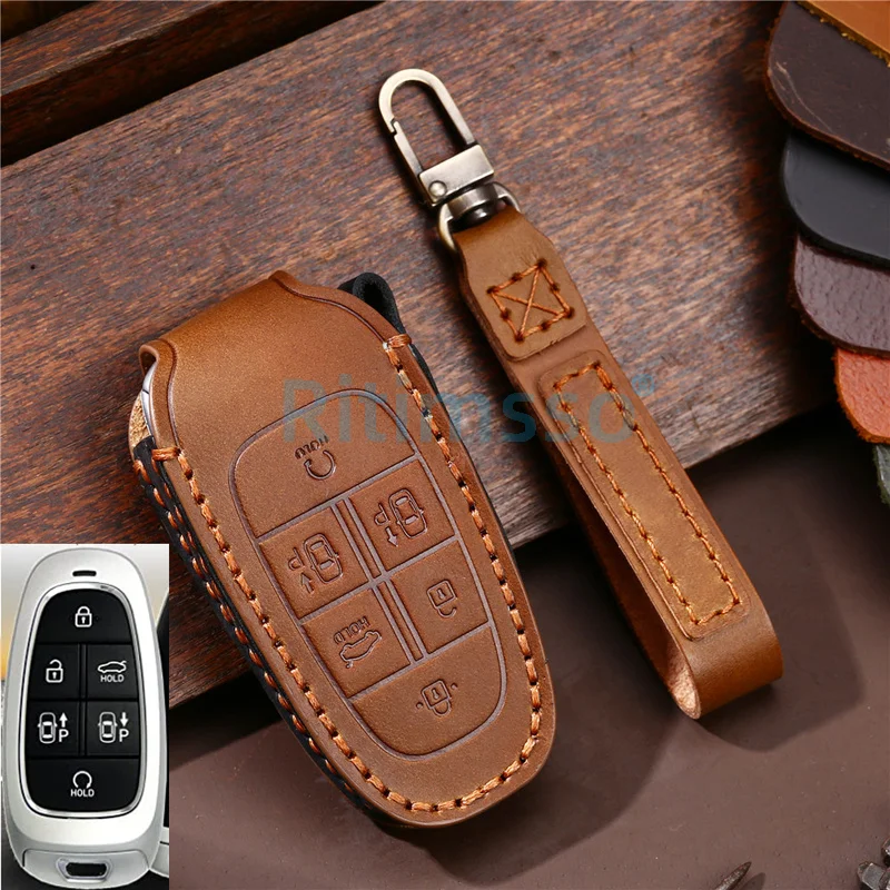 2022 Новый кожаный чехол для ключа для Hyundai Solaris Sonata Hybrid NEXO NX4 New Grand Santa Fe Tucson 2021 2022