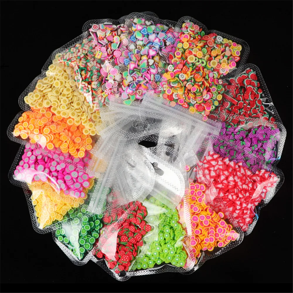 3D красочные фрукты смешанные крошечные ломтики наклейки Полимерная глина DIY дизайн ногтей акриловая красота Полимерная глина аксессуары для дизайна ногтей 1 пакет