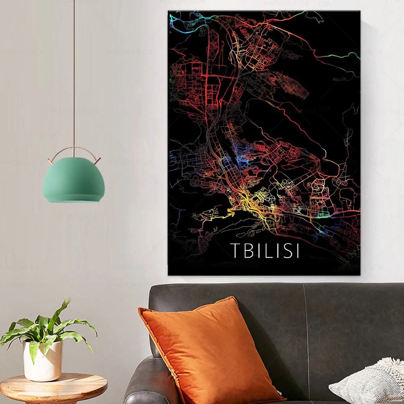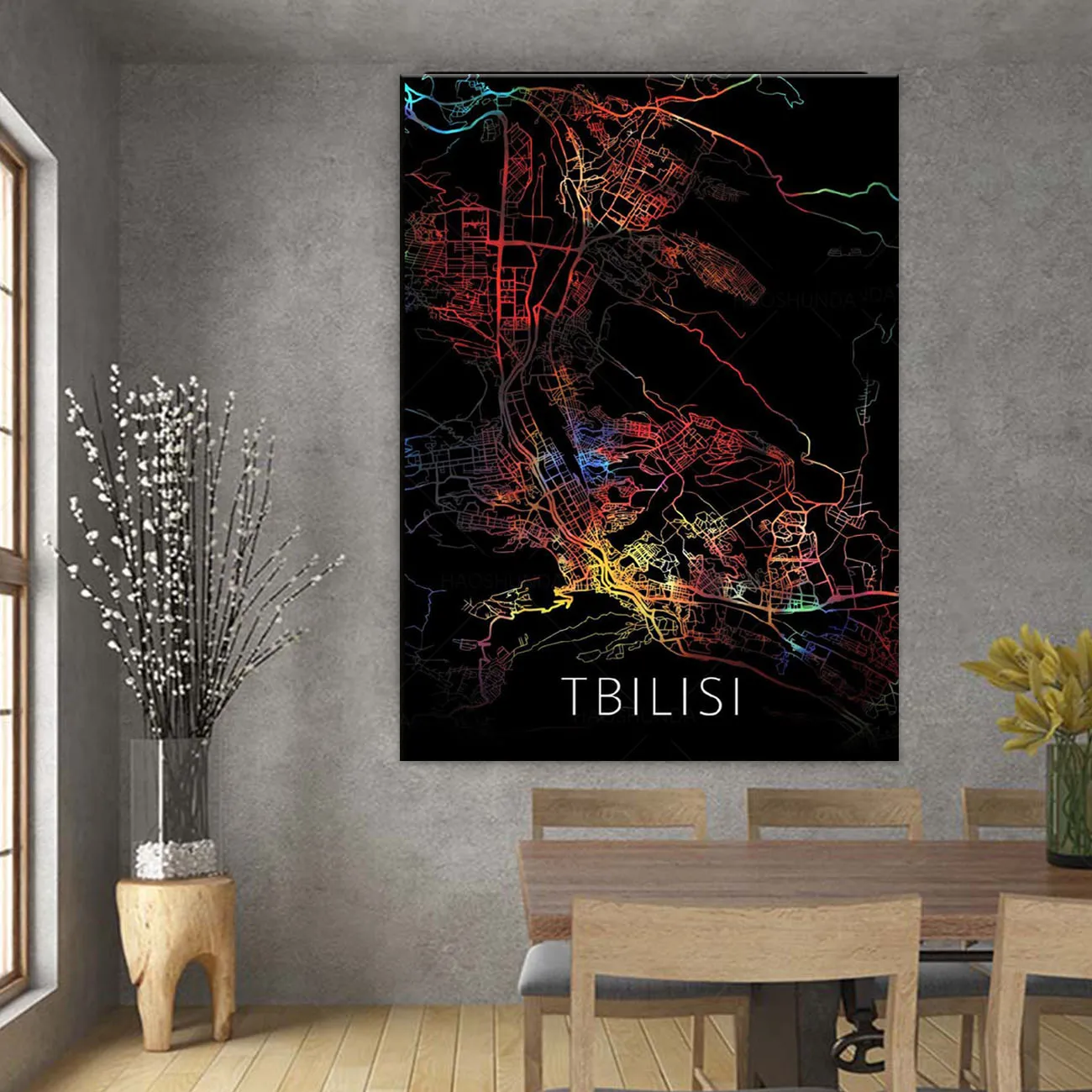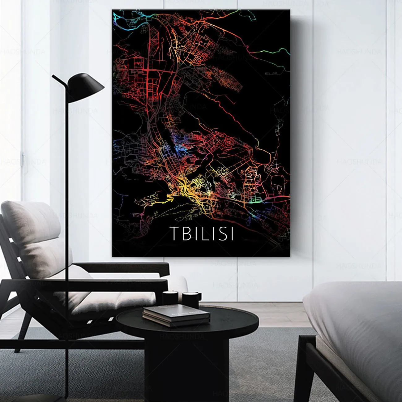 Тбилиси грузинская Акварельная черная карта города, холст, живопись, настенный художественный принт, современный плакат, настенные картины, украшение для гостиной