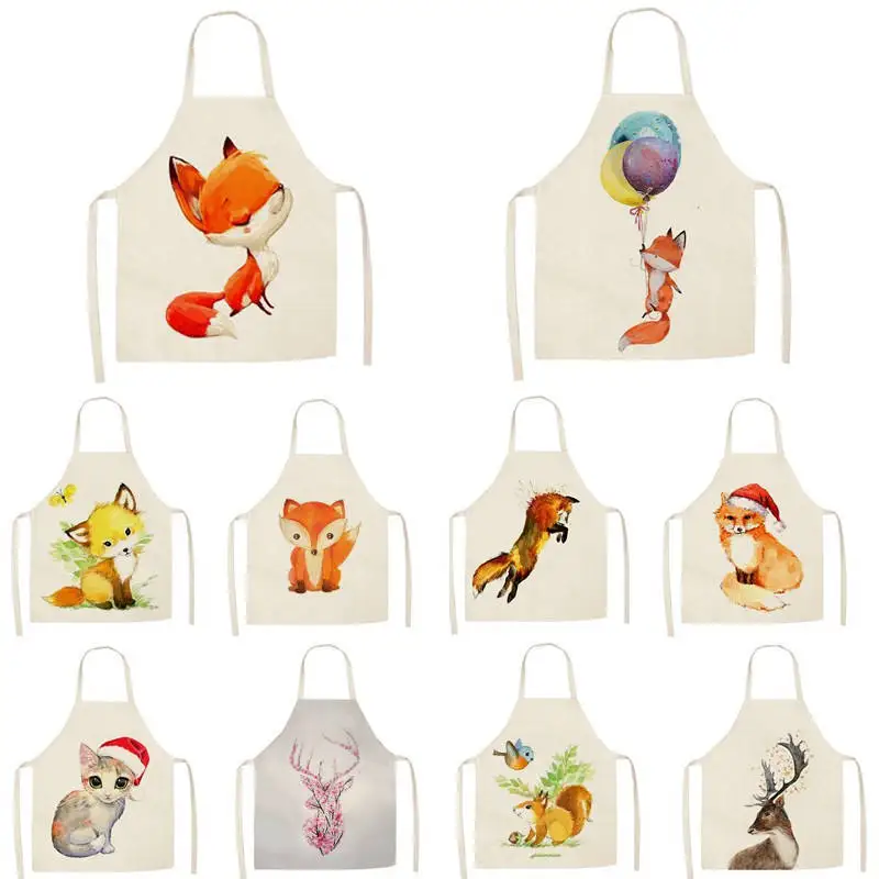 Фартук для женщин и детей, кухонный аксессуар с рисунком оленя, лис...
