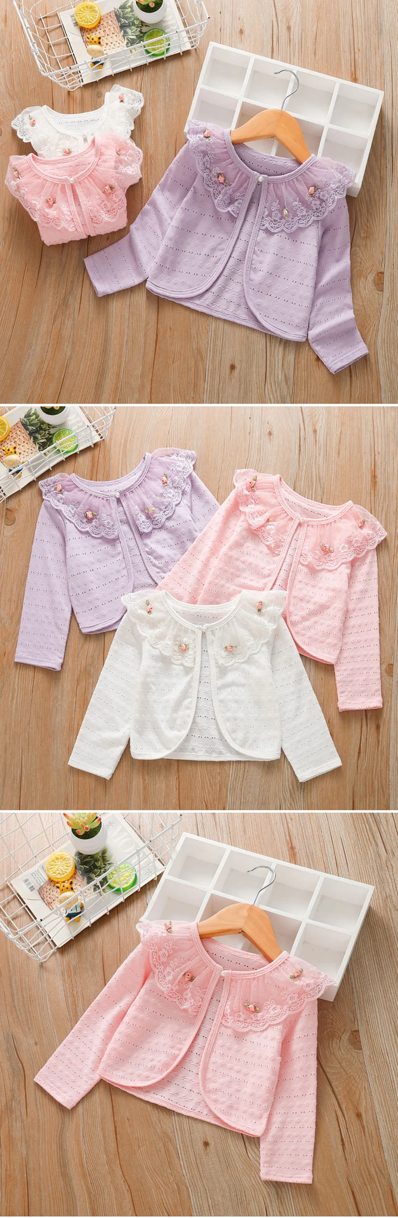 Хлопковый кружевной кардиган для девочек, тонкое пальто для девочек, весенне-летний белый кардиган с длинным рукавом, детская одежда, вязаная детская верхняя одежда WTC41