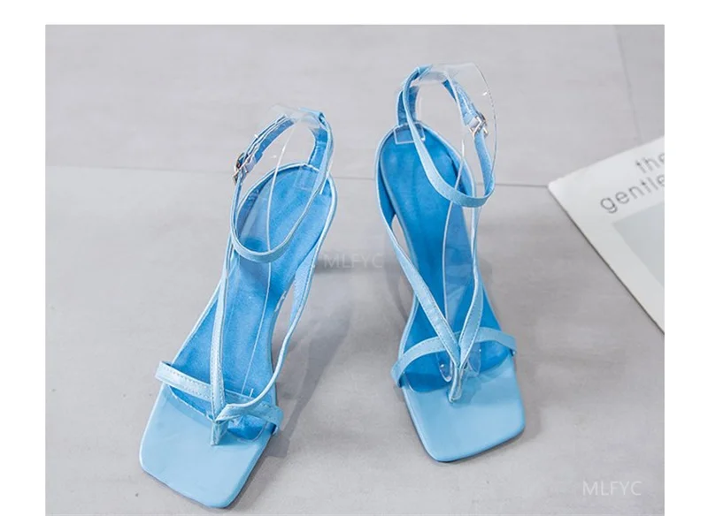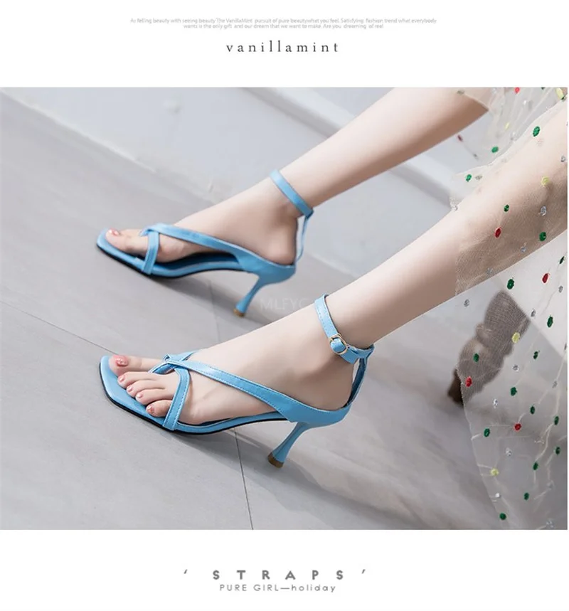 Женские сандалии с открытым носком, универсальные римские шлепанцы на высоком каблуке-шпильке, квадратный носок, новая модель