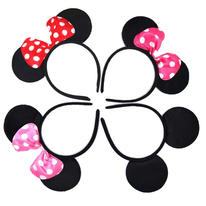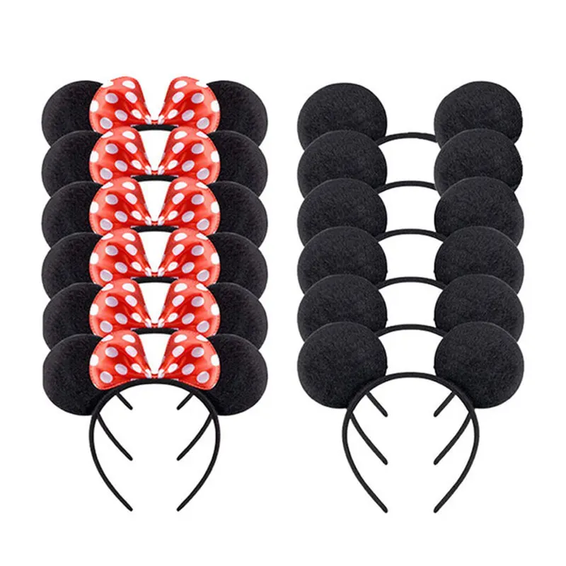 Набор аксессуаров Микки Мауса Disney, однотонный черный красный бант для детского дня рождения вечерние Подарочная повязка на голову с ушками для вечеринки, декор для сувениров