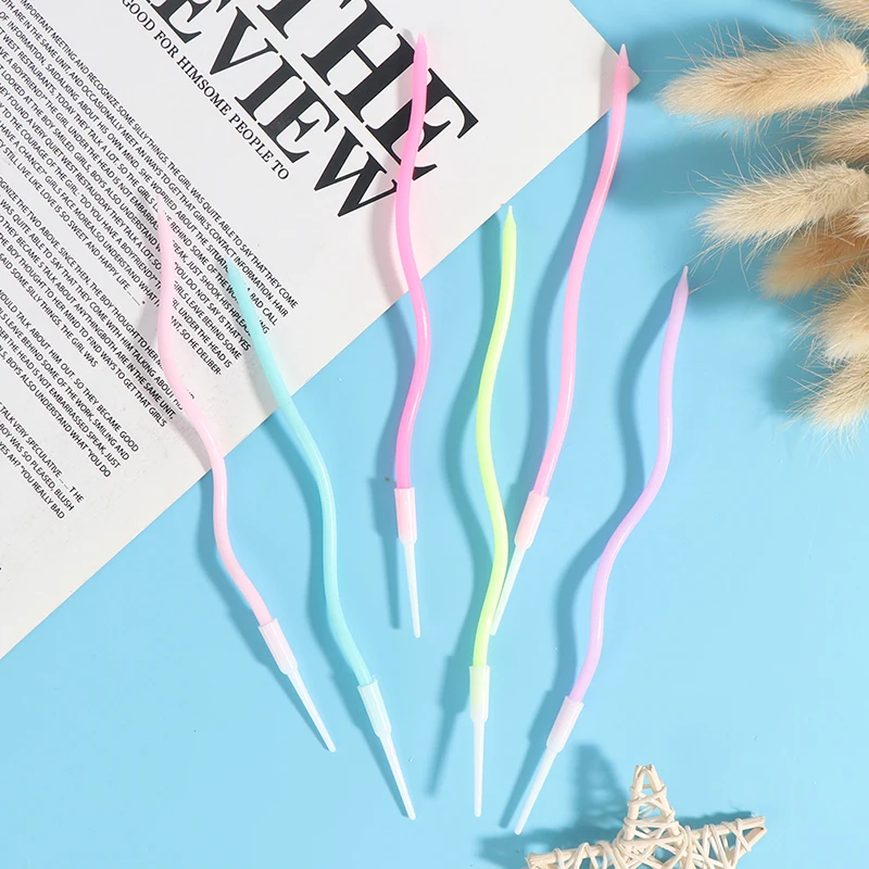 6 шт.корт. Резьбовая свеча изогнутая Свеча для торта длинная изогнутая Кондитерская безопасная пламень детский торт на день рождения романтические украшения
