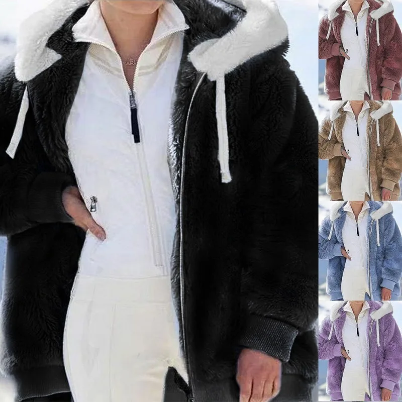 2021 зимняя плюшевая куртка, женская модная куртка на молнии с капю...
