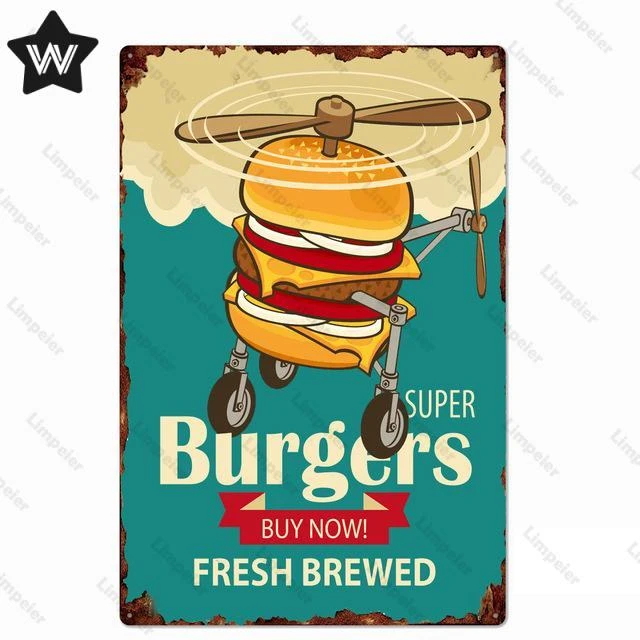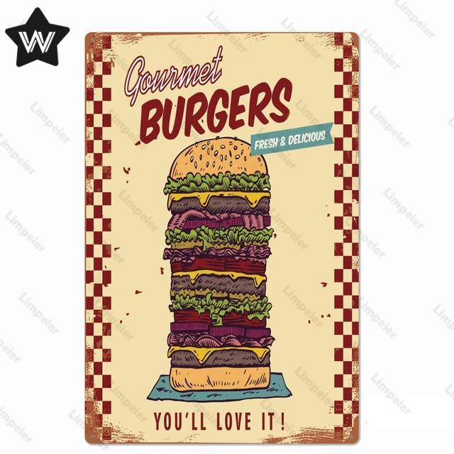 Винтажный металлический жестяной знак с гамбургерами, хот-догами, плакат с меню, Настенный декор для кухни, ресторана, металлические наклейки, жестяные таблички