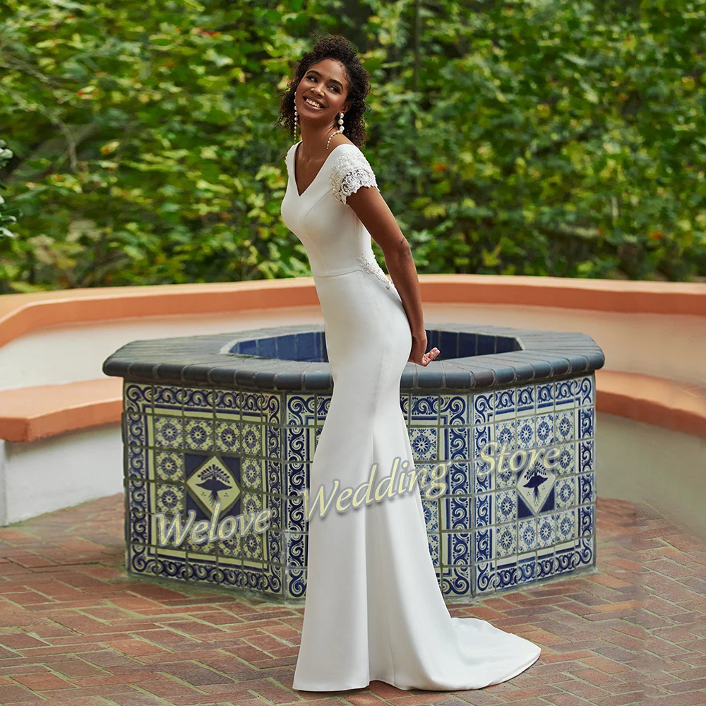 Простое свадебное платье, новинка, женское свадебное платье с юбкой-годе, цвет белый, дешевые платья с коротким рукавом, женское платье 2022