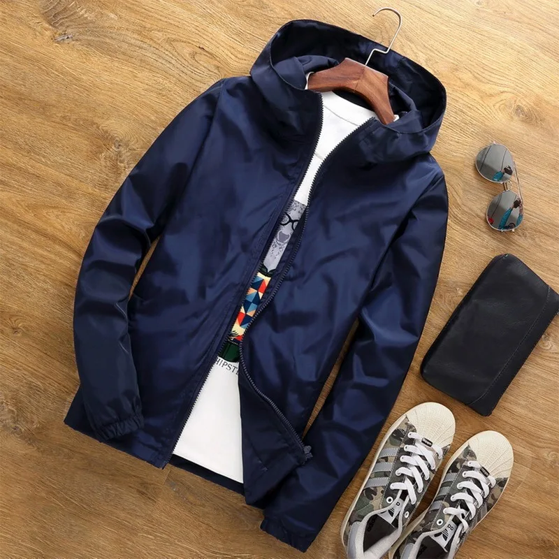 Мужская куртка-бомбер 6XL 7XL, тонкая однотонная куртка с капюшоном...