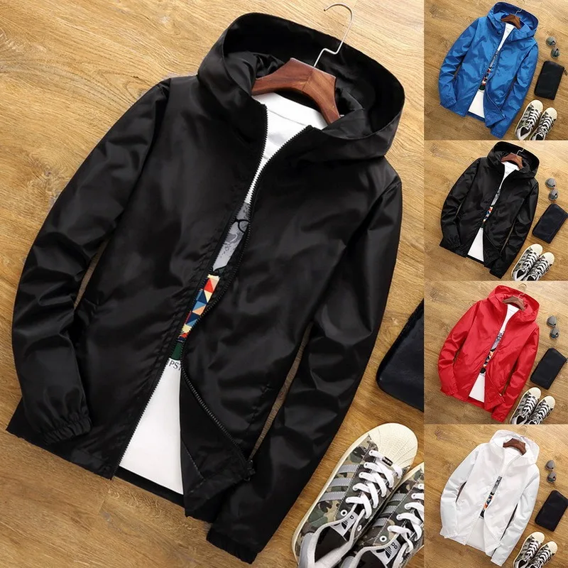 Модная ветровка для молодых мужчин, повседневная куртка с капюшоном...