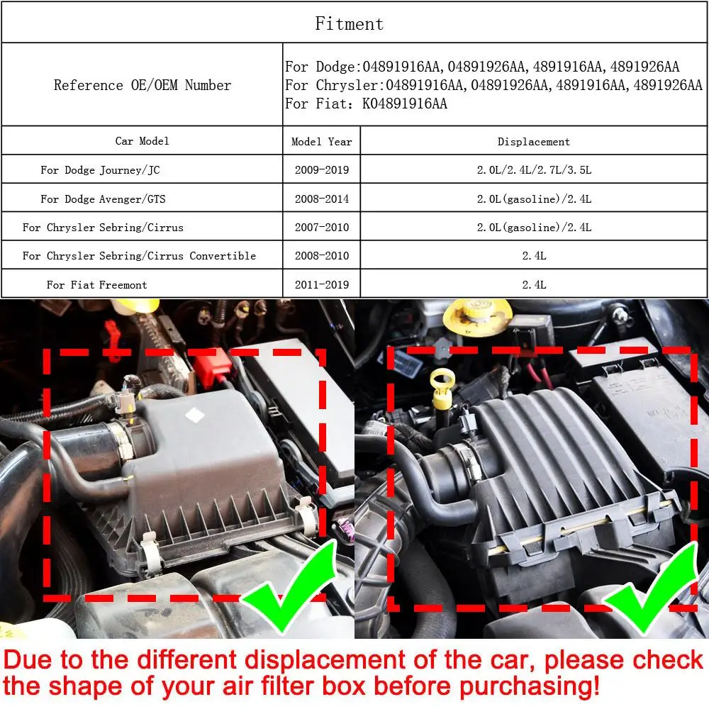 Воздушный фильтр для автомобильного двигателя 04891916AA для Dodge Journey JC Avenger GTS для Chrysler Sebring Cirrus 2007-2010 2.4L для Fiat Freemont