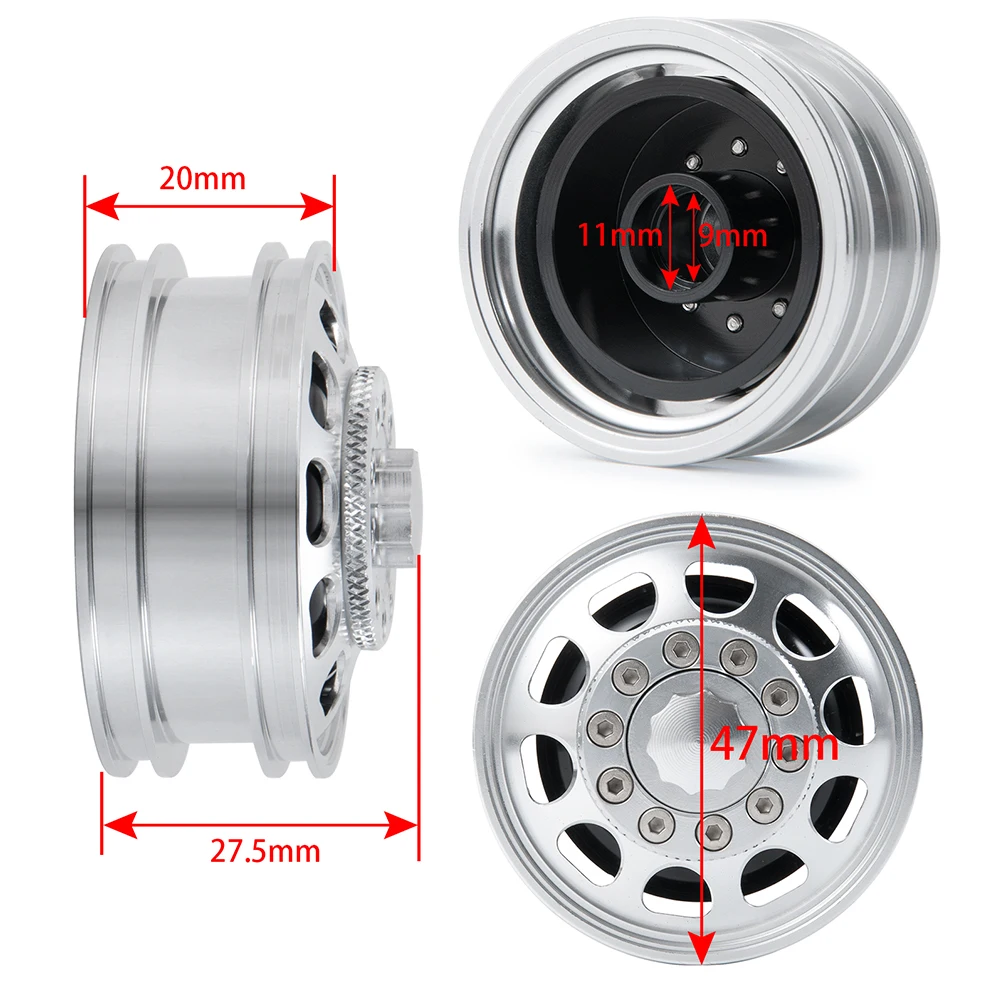 Передние и задние диски YEAHRUN из алюминиевого сплава для прицепа Tamiya 114, трактора, радиоуправляемого грузовика, обновленные детали