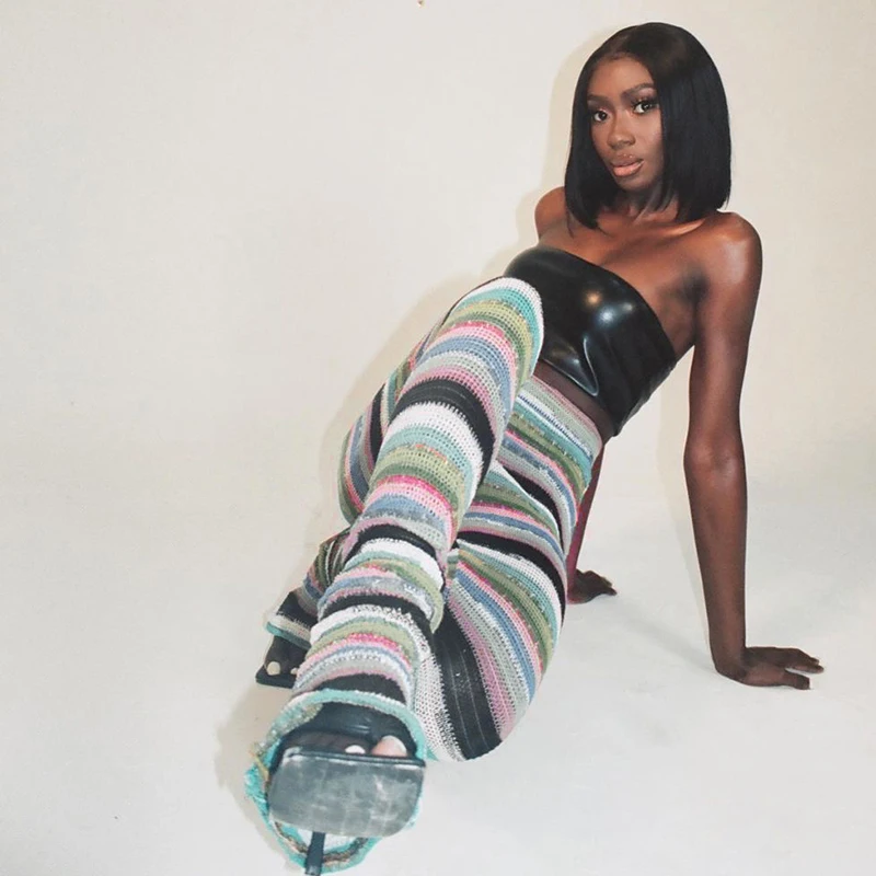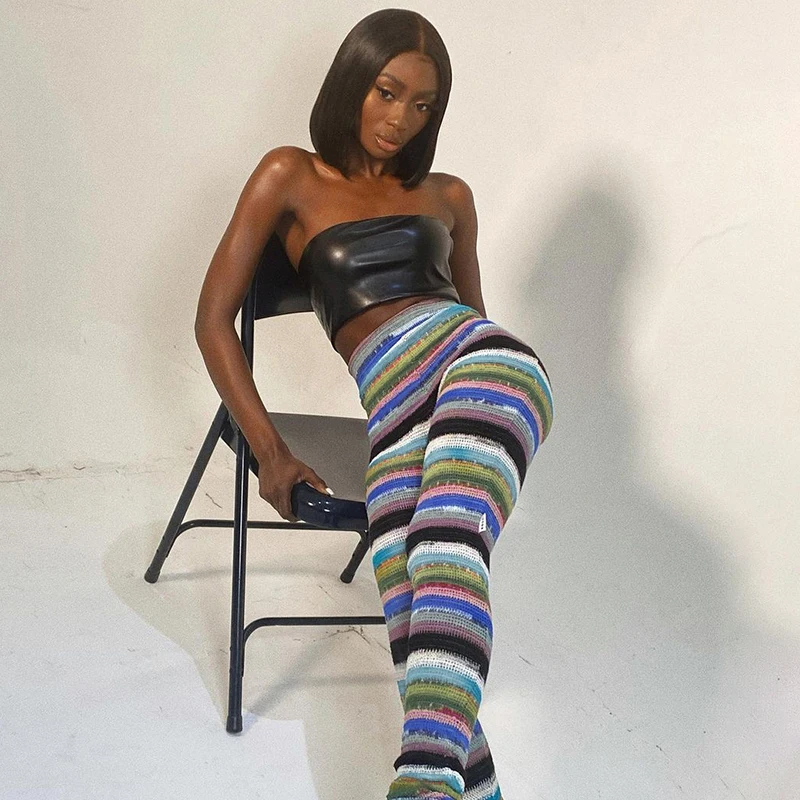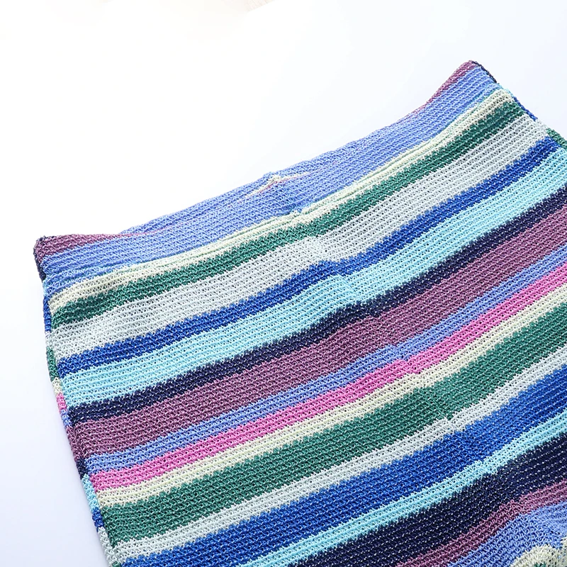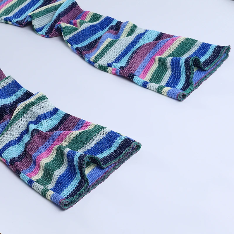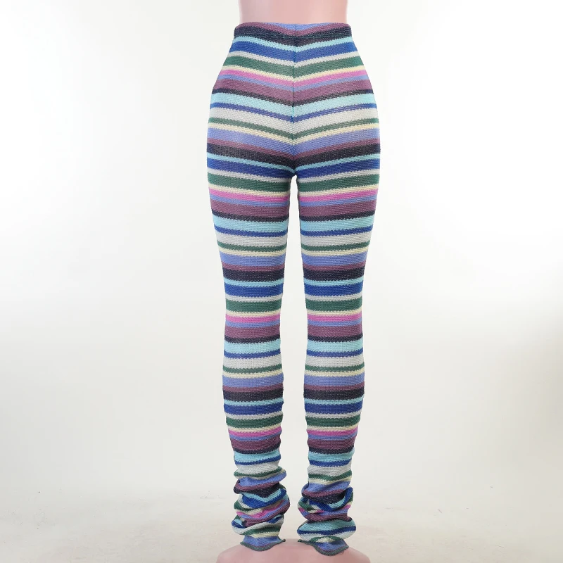 2021 Разноцветные полосатые трикотажные штаны в уличном стиле женск...