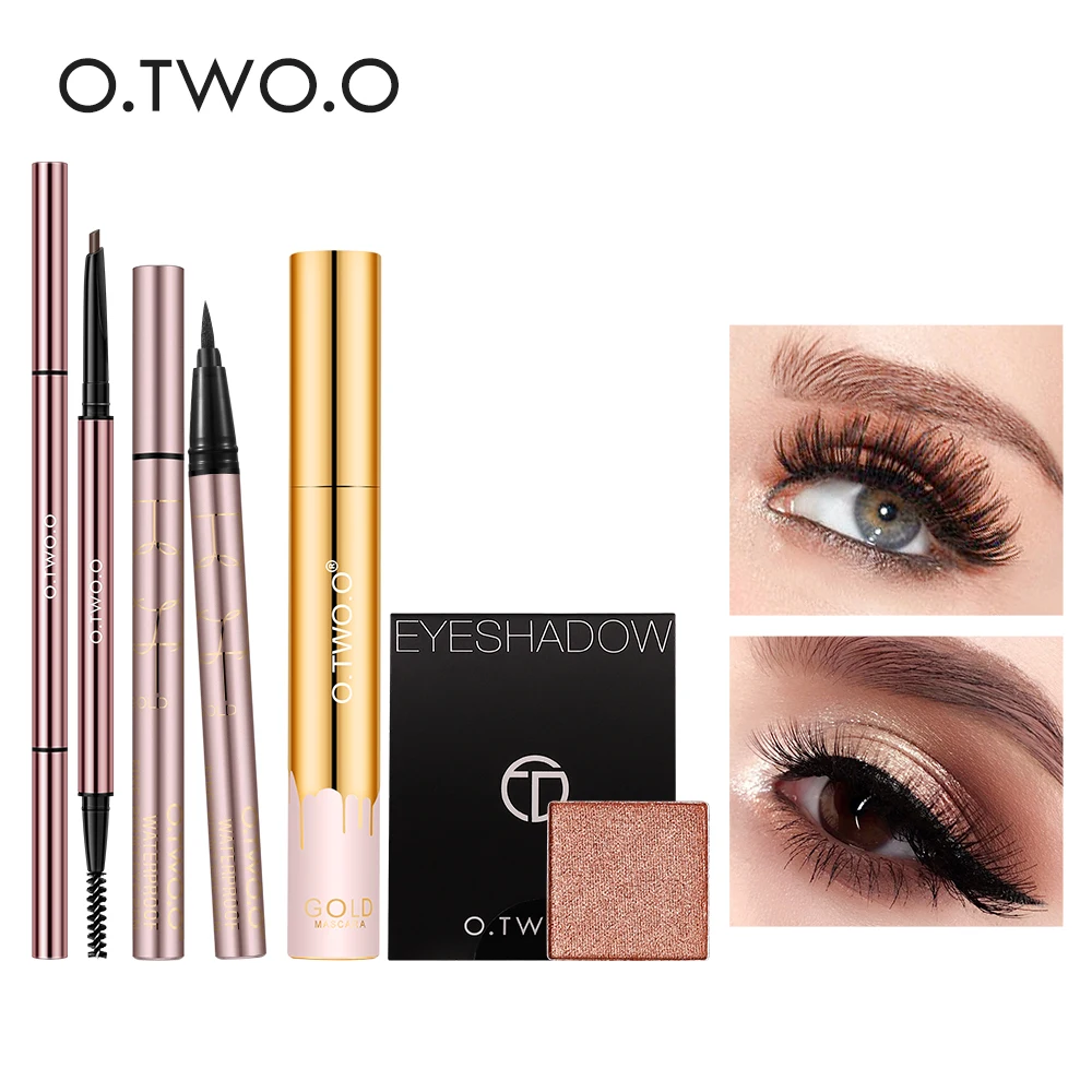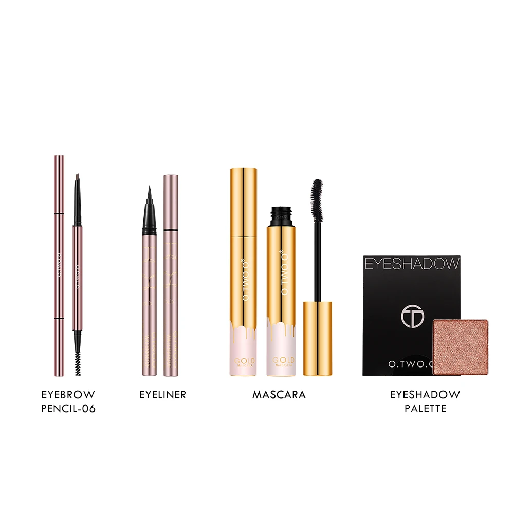 O.TWO.O Набор для макияжа 4 шт., водостойкая Черная Подводка для глаз, карандаш для бровей, тушь для ресниц, палитра теней, косметический набор для глаз, макияж для женщин