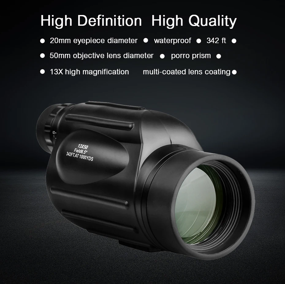 1.13X50 увеличение: Смотрите вещи 13X ближе и получайте более четкий и яркий диапазон обзора с объективом 50 мм-самый мощный ручной Монокуляр, доступный на рынке сегодня, это также обеспечивает наиболее приятный и четкий вид.
