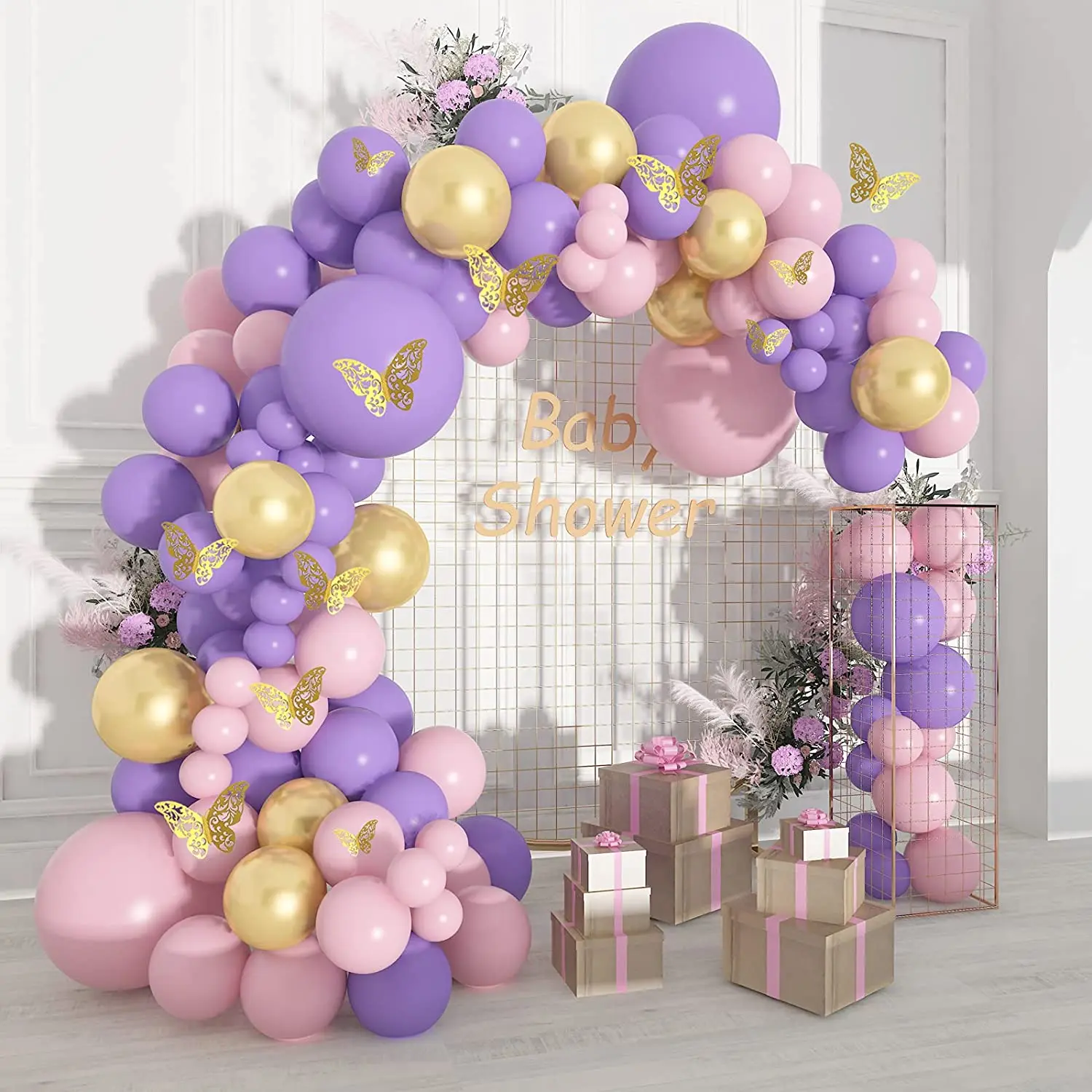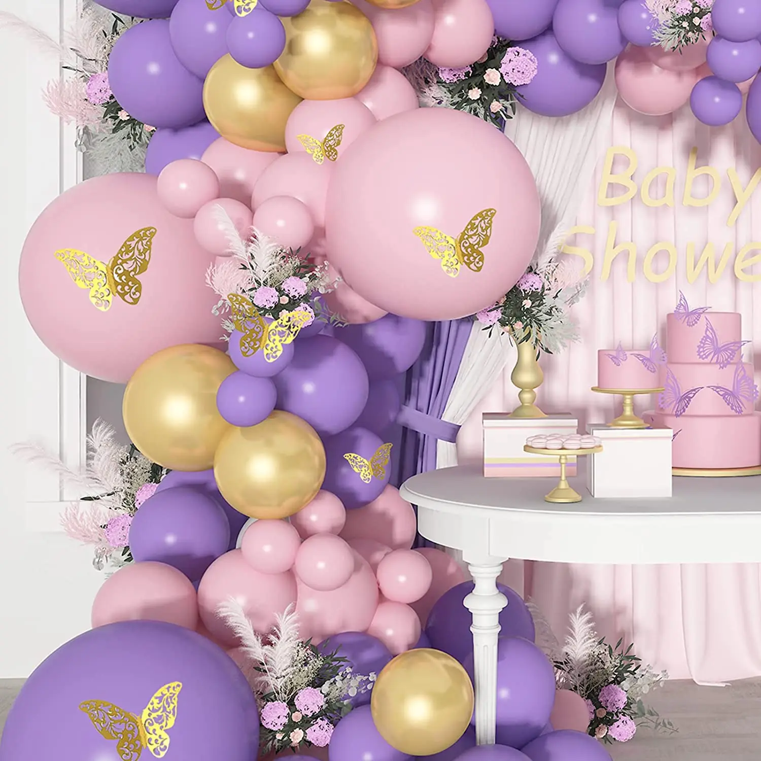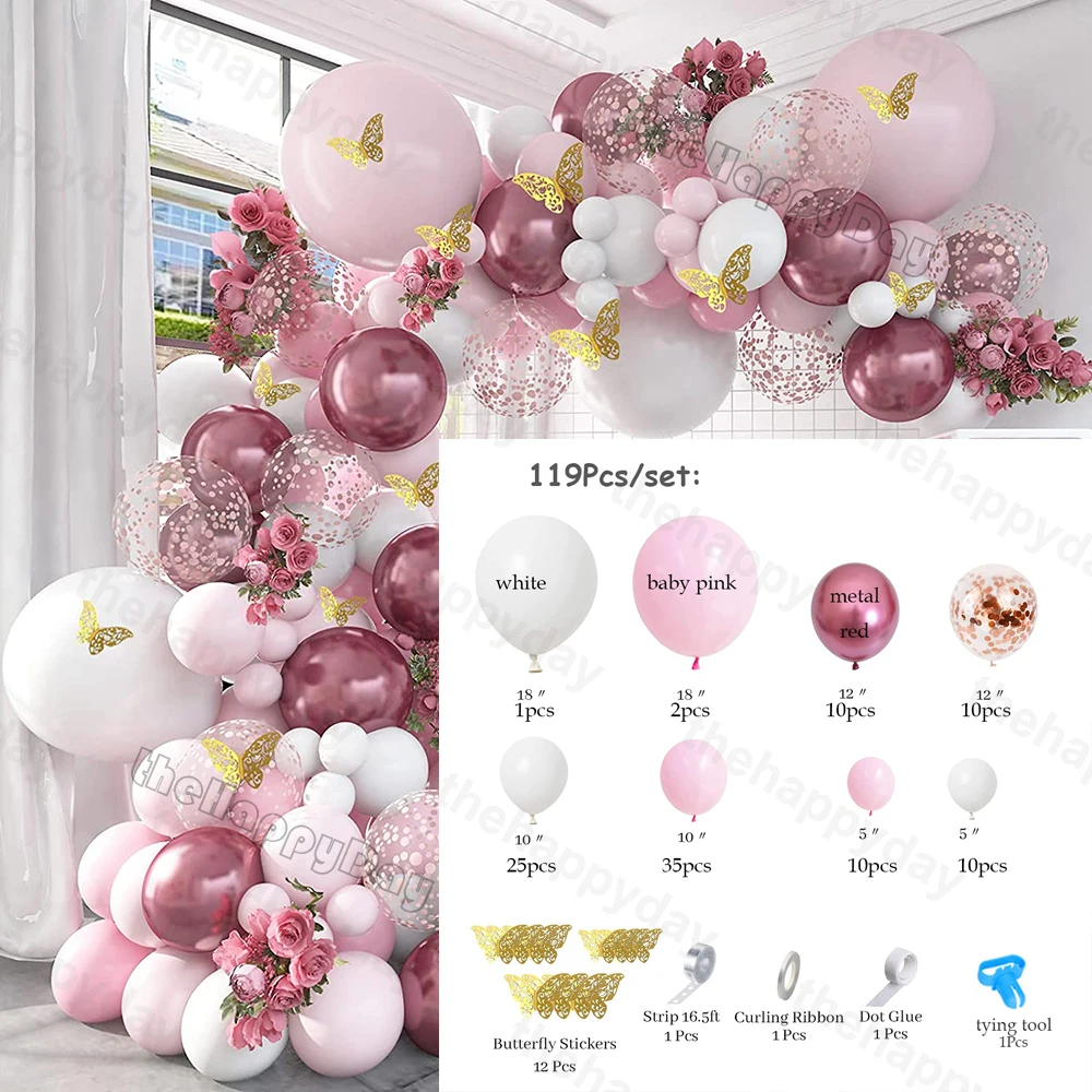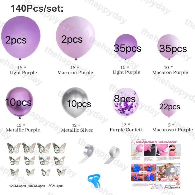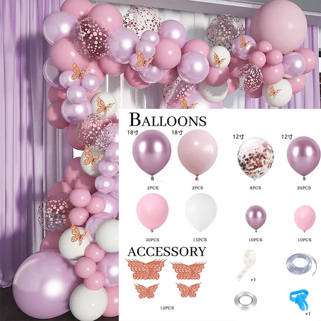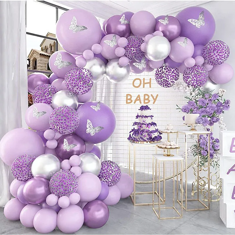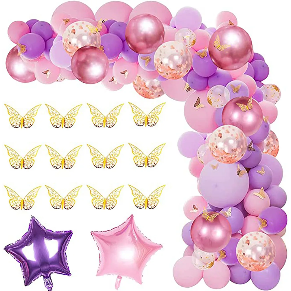Розовый фиолетовый воздушные шары-гирлянды розовое золото воздушный шар с принтом "Бабочки" Арочный комплект металлический розовый фиолетовый шарики на день рождения воздушные шары для свадьбы вечеринки декор