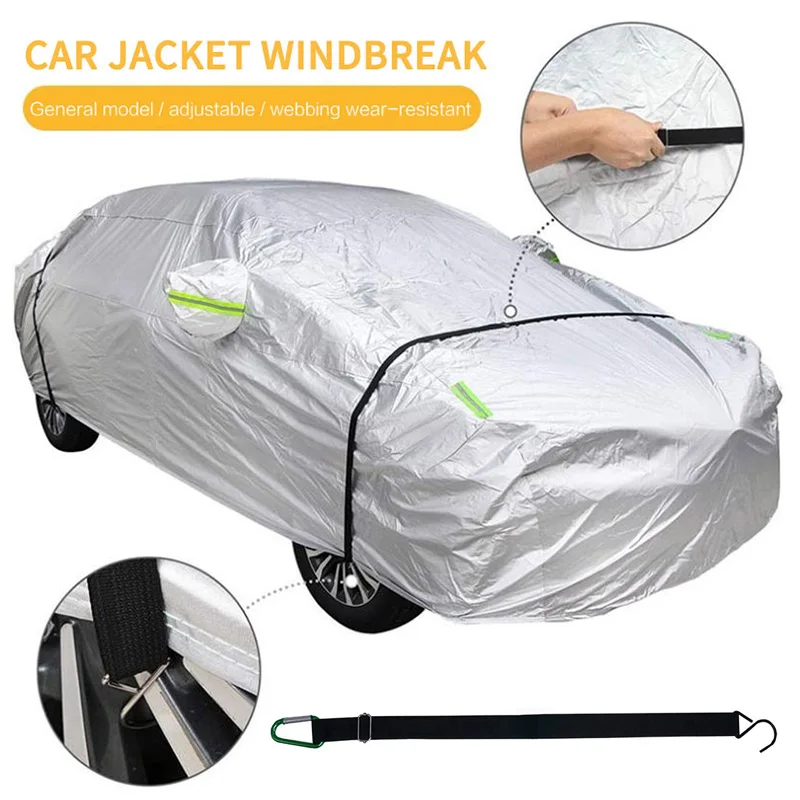 [Защита от сильного ветра]: передние и задние ветрозащитные полосы изготовлены из толстой веревки с крючками на обоих концах. Две регулируемые металлические пряжки посередине. Его также можно зацепить или завязать непосредственно на оси колеса во время использования. Удобно и быстро экономит время и силы. Покупателям, приобретающим автомобильные Чехлы, настоятельно рекомендуется приобретать этот товар одновременно. Обеспечьте защиту от пыли для автомобиля. В ветреный день или во время удара тайфуна, чтобы защитить автомобильный чехол от ветра, носите его, чтобы противостоять сильному ветру и защитить ваш автомобиль.