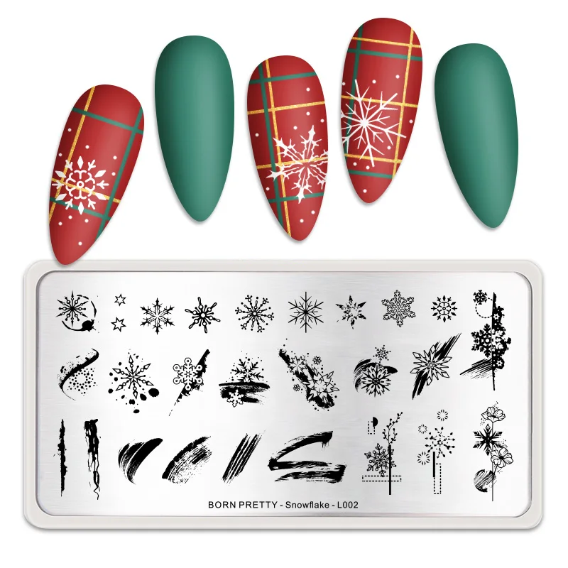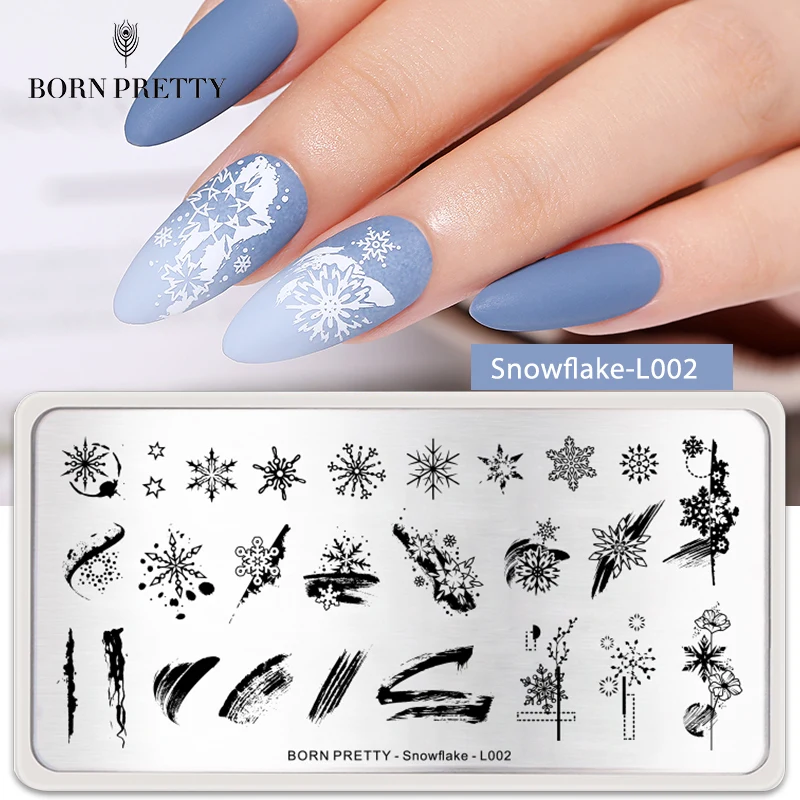 Пластины для стемпинга BORN PRETTY, зимние рождественские штампы со снежинками, из нержавеющей стали