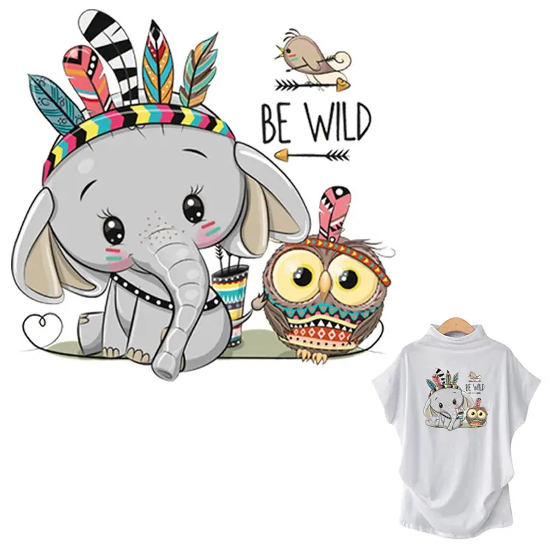 Мультяшные животные Гладильные наклейки Топы теплопередача аппликац...