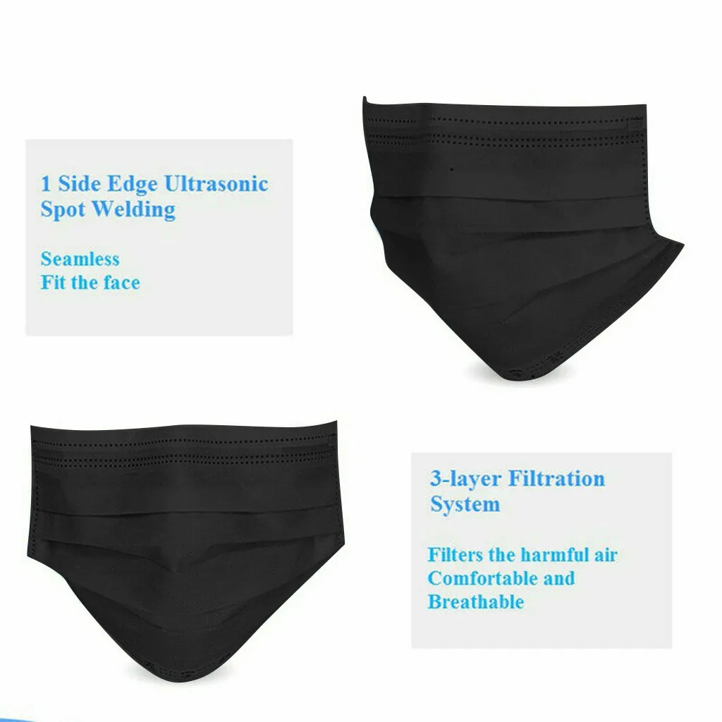 Mascarilla 10-600 шт. Одноразовые маска на лицо черный маски Non-ткали 3 Слои фильтр для взрослых дышащая сварочная маска для полости рта mascarillas