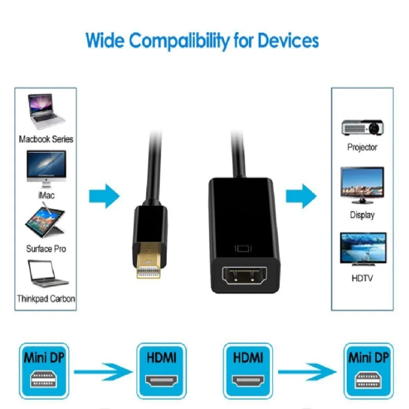 1. Выход: Наслаждайтесь выходом UHD на внешний монитор или телевизор с плоским экраном, идеально подходит для дисплеев с MiniDP.