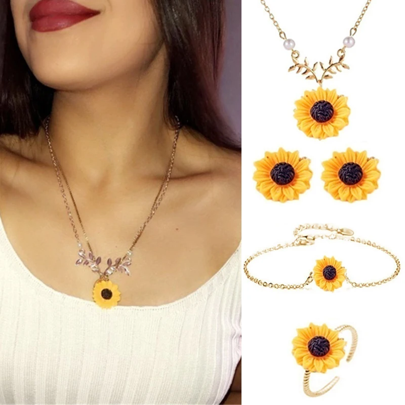 Нежное колье-чокер с подвеской Подсолнух для женщин, креативное оже...