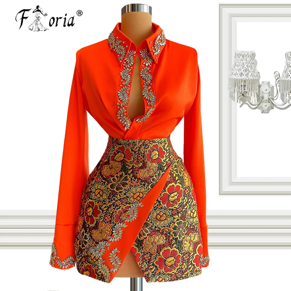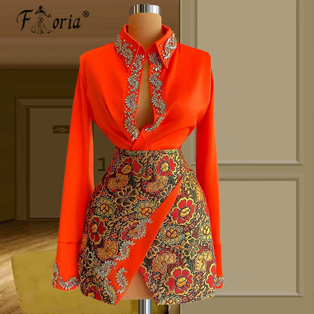 Осенний комплект из двух предметов Runaway, мини-платье для выпускного вечера, женская блузка из органзы с длинным рукавом и бисером, рубашка и юбка с цветочным принтом, модные костюмы