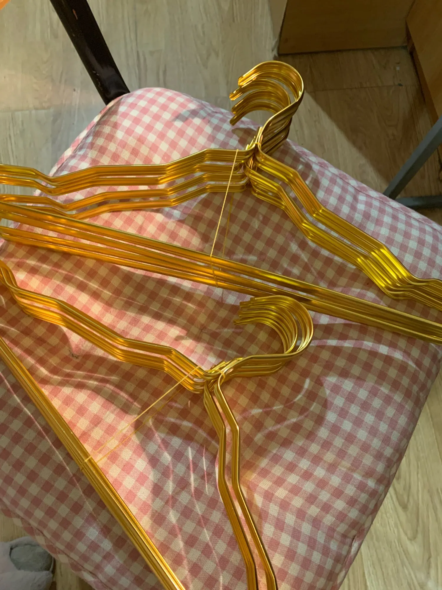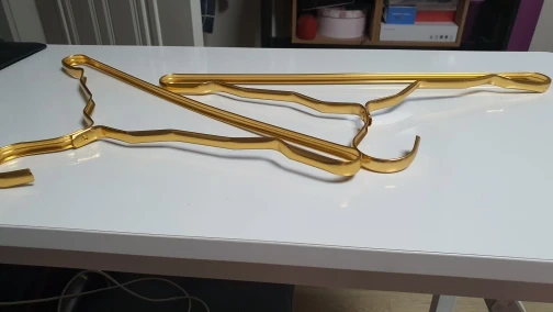 Очень расстроилась когда получила вешалки.. до этого заказывала у другого продавца, эти совсем плохого качества, упаковка была никакая к тому же порванная в пути. Качество хлипкое, пришли помятые, цвет дешевый..заказала 20 шт и очень жалею. На фото видно разницу