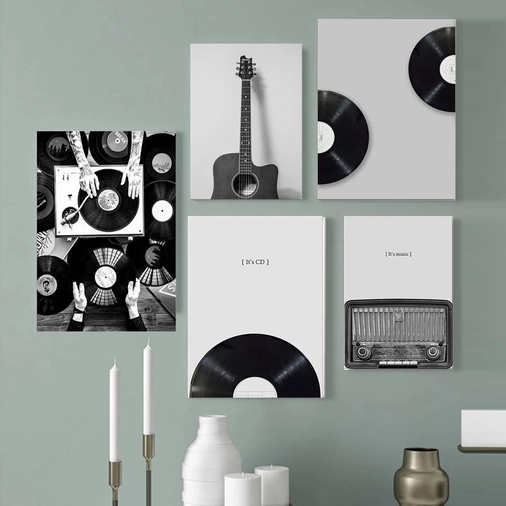 Винтажные музыкальные черно-белые виниловые пластины, картины на холсте, постеры и принты, Настенная картина для гостиной, украшение для дома icon star icon star icon star icon star icon star