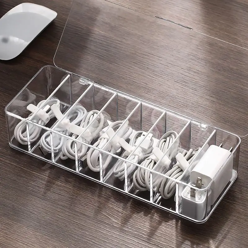 Коробка для хранения кабеля прозрачная пластиковая коробка для хранения данных для стола канцелярские принадлежности органайзер для макияжа, коробка для ключей и ювелирных изделий