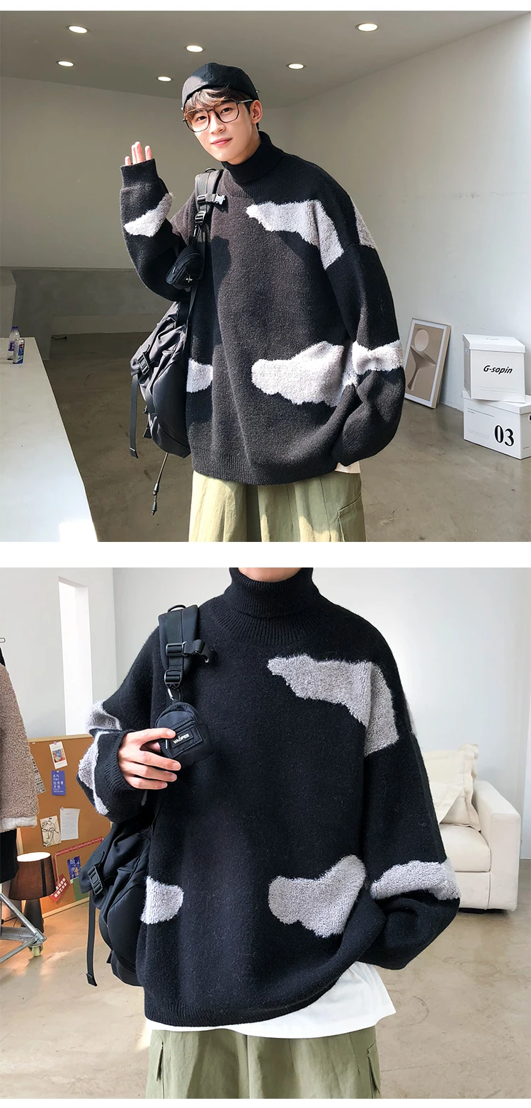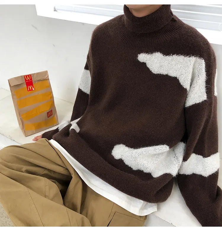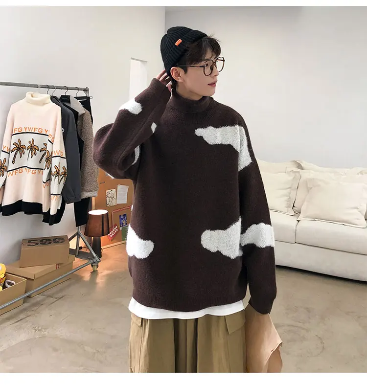 Пуловер мужской вязаный, оверсайз, модные свитера, осень, 2021